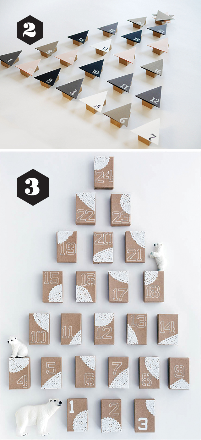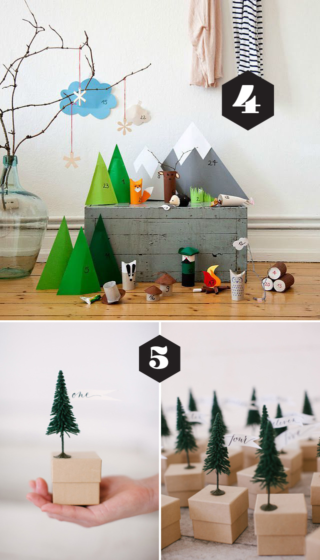 2. ja 3 La Maison De LouLou:n blogista löydät kuusen muotoisten joulukalentereiden teko-ohjeet. Klikkaa auki Holiday Craft -nettilehti, joka on lukemisen arvoinen muutenkin. Numero 2. ohjeen löydät tämän linkin takaa.