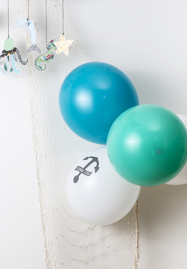 Ilmapallot ja viirit kutsuvat merirosvot juhlaan. Ilmapallokimpuilla somistat tilan näyttävästi. Hauskan värikkään kokoleman teemaan sopivista palloista saat jo yhdellä ilmapallolajitelmalla. Valitse mustat, punaiset ja valkoiset pallot tai ilmapallolajitelma turkoosin eri sävyissä. Tyylikkäät Ankkuri-ilmapallot voit sujauttaa vaikka lahjapusseihin kotiin viemiseksi.