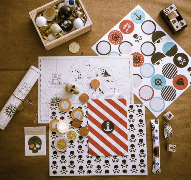 Raidat, pallot, ankkurit, pääkallot, parrat ja tietysti aarrekartta! – kuuluvat tähän teemaan tietenkin.