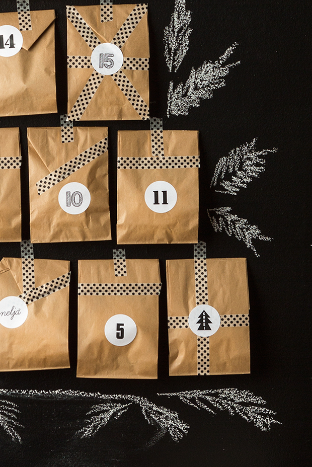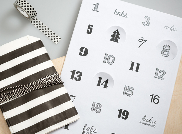 Verkkokaupastemma löytyvät myös supersuositut ja kauniisti pakatut joulukalenterimme, joihin mahtuu isompikin yllätys. 12,90 € hintaista joulukalenteria on saatavilla punaisena ja mustana ja se sisältää 24 paperipussia, 24 kalenteritarraa ja 4 m bakers twine -narua. Joulukalenteritarroja ja paperipusseja myös oman mielen mukaisen kalenterin toteuttamiseen löytyy runsaasti!