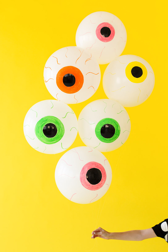 Myös nämä hiukan koomisetkin simämunailmapallot ovat Studio Diy:n käsialaa ja ohje niiden tekemiseen löytyy Balloon Time -blogista. Valkoiseen palloon on tussilla piirretty silmiä. Tussin sijaan tässä voisi käyttää myös akryylimaalia.