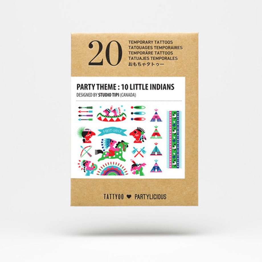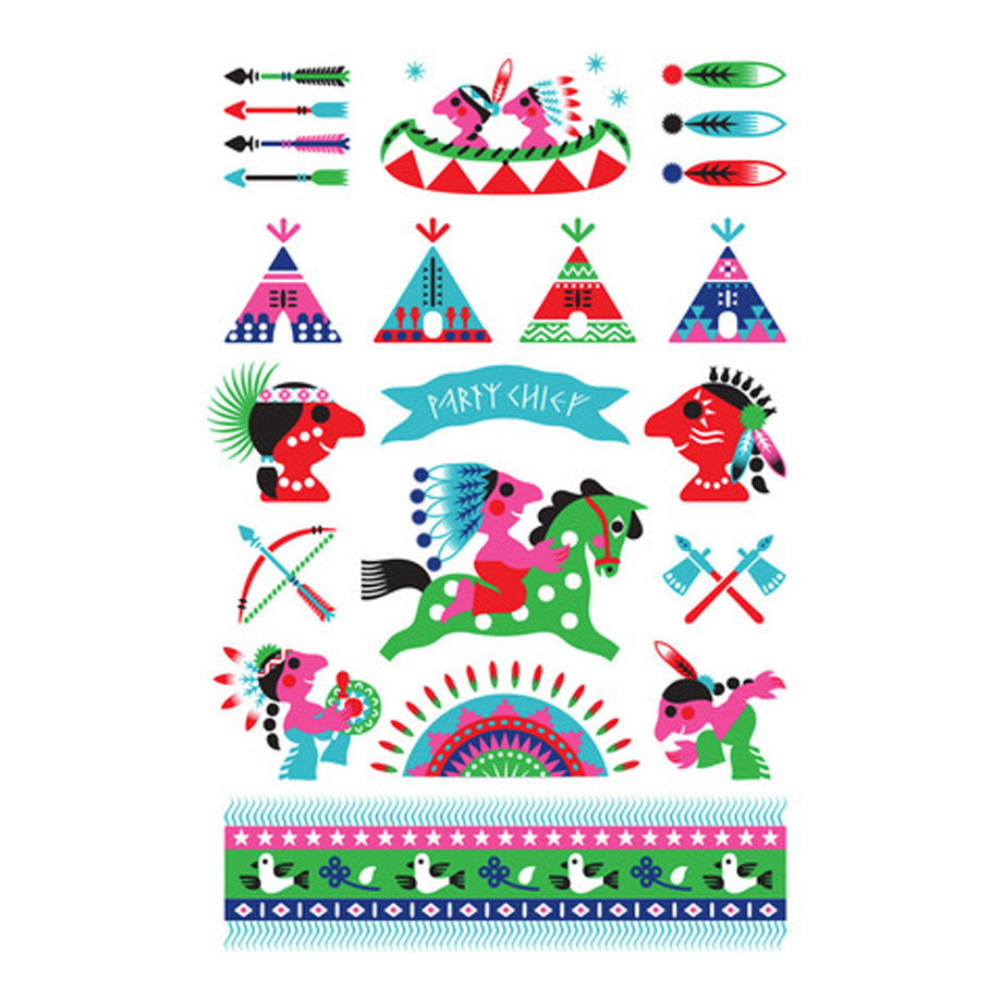 Ihanat TATTYOO leikkitatuoinnit. Paketissa on 20 intiaaniaiheista tatuointia (2 samanlaista arkkia), koko 10,2 × 15,2 cm.