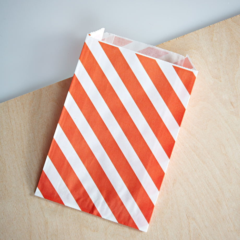 12 kpl oransseja, vinoraidallisia paperipusseja.