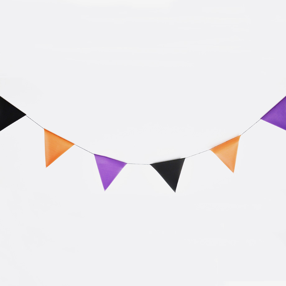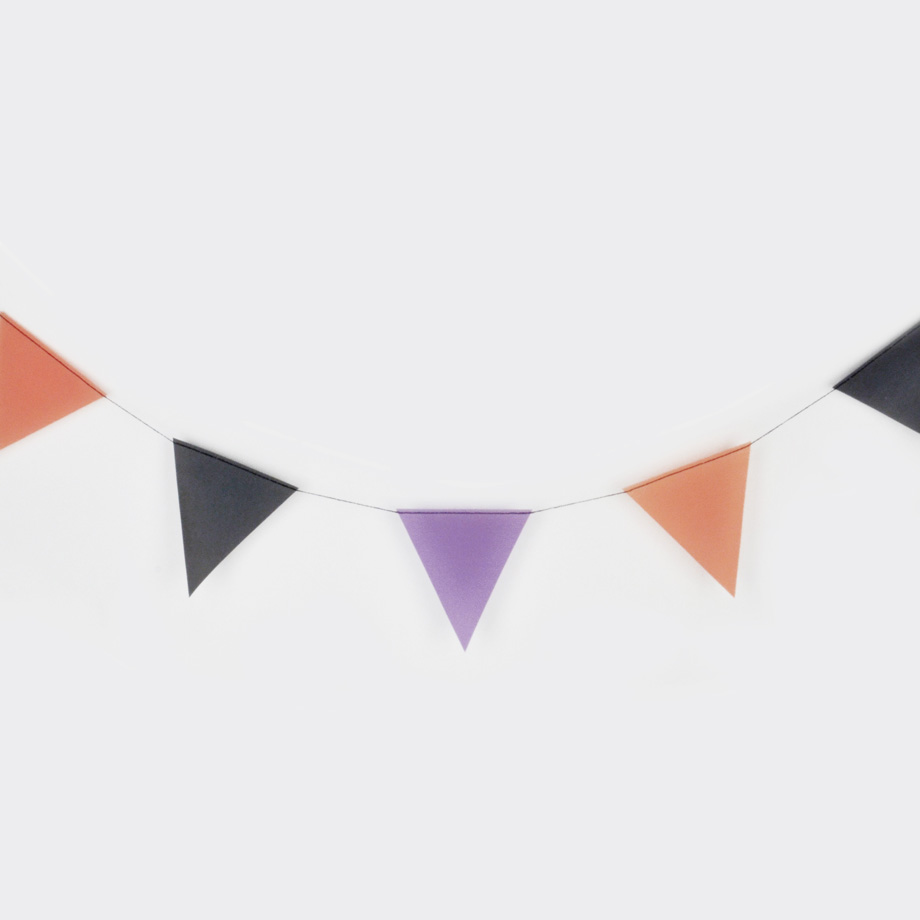 Kolme metriä pitkä viirinauha, jossa 12 kuultopaperista viiriä halloween-teemajuhliin sopivissa väreissä.