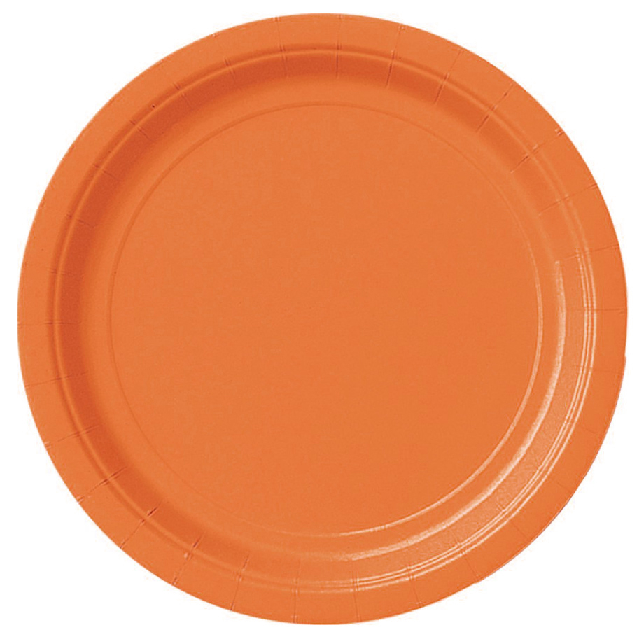 8 kpl isoja oransseja paperilautasia. Yhden lautasen halkaisija on n. 23 cm.