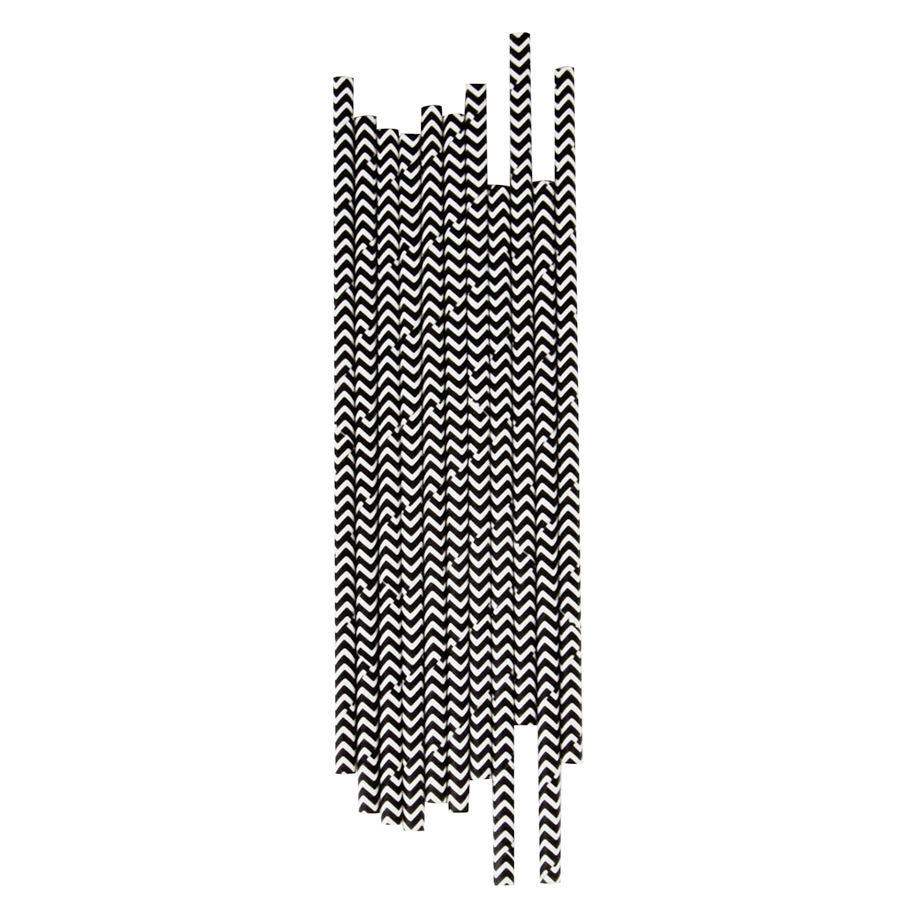 25 kpl chevronkuvioituja mustavalkoisia paperipillejä.