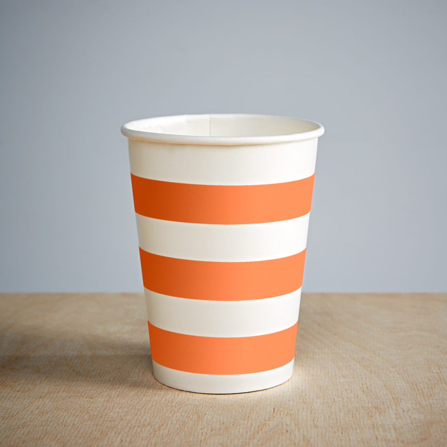 10 kpl paperimukeja raikkaalla oranssivalkoisella raidoituksella.
